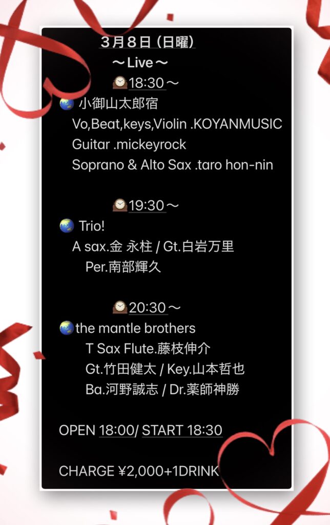 ENTRY:¥1,000/1Drink付き