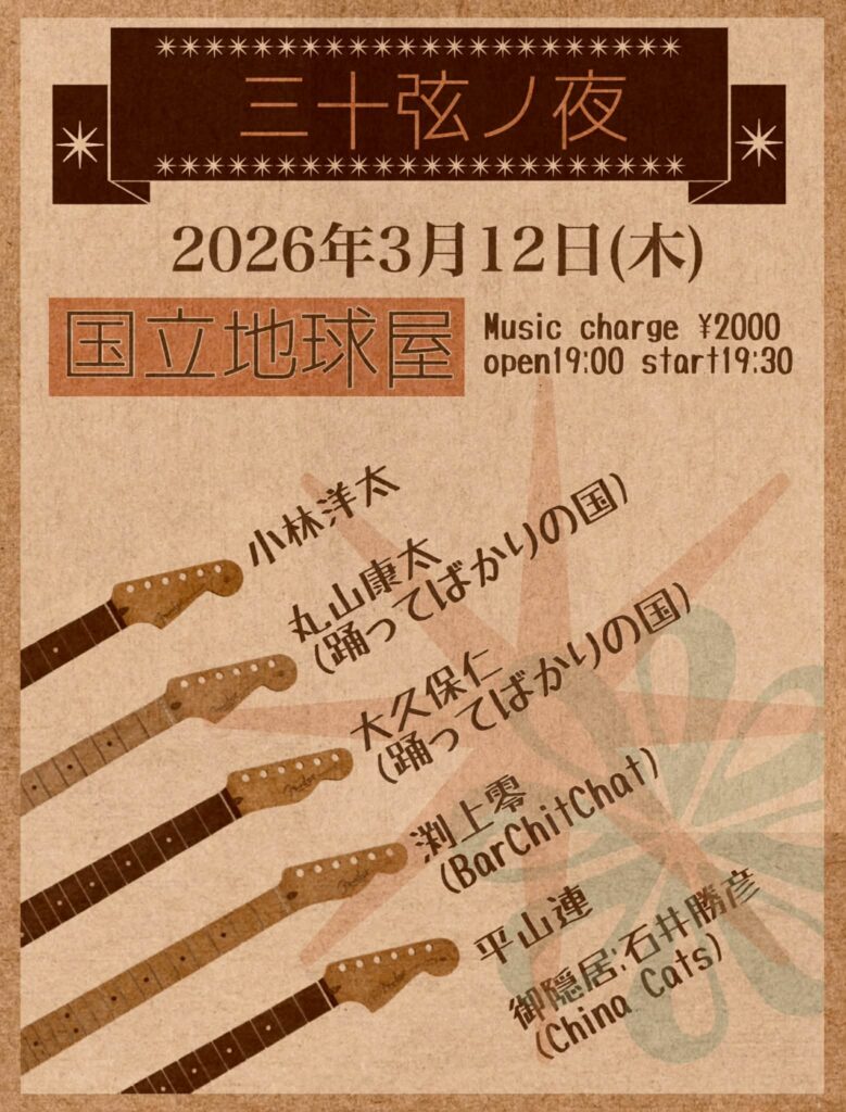 3曲入魂でどなたでも地球屋のステージで演奏できる一日!!!